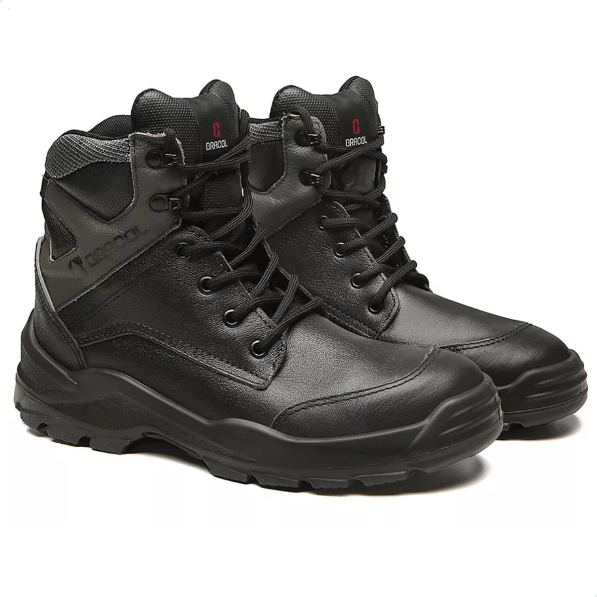 Bota para uso ocupacional com fechamento em cadarço e confeccionada em vaqueta discovery preta. Forração interna na gáspea e forro do cano em nylon com excelente absorção de suor, cano acolchoado e solado poliuretano (PU) bidensidade e estabilizador de caminhada.