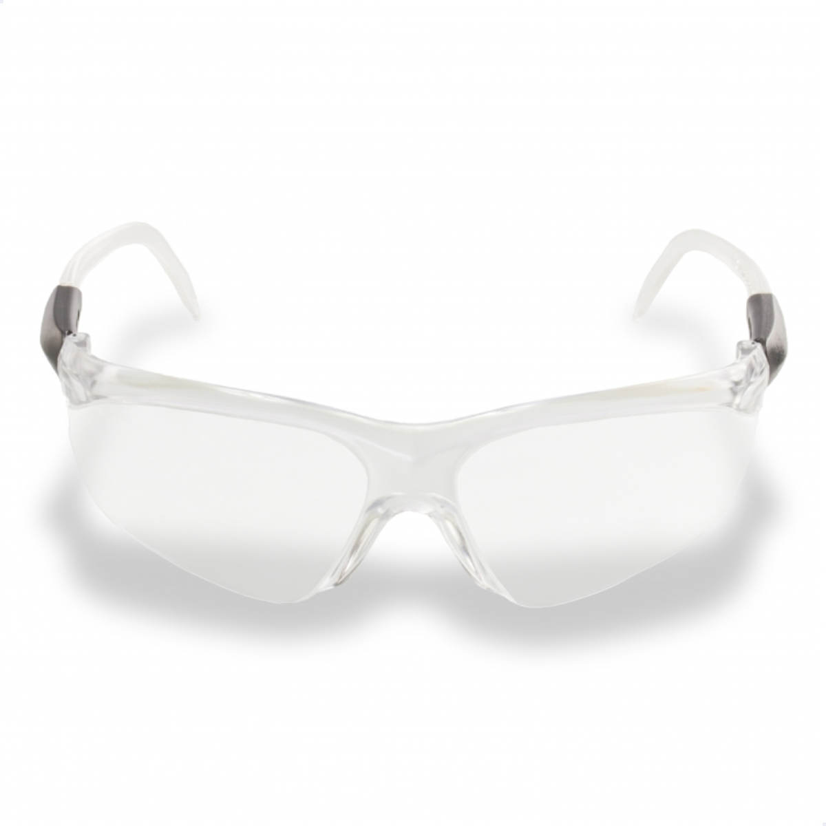 Óculos de proteção, constituído de armação e visor confeccionados em uma única peça de policarbonato, com apoio nasal confeccionado do mesmo material e injetados na mesma peça. As hastes são constituídas de duas peças: semi-haste vazada confeccionada em náilon comum a das extremidades fixadas ao visor por meio de parafuso metálico e semi-haste confeccionada do mesmo material do visor ques e encaixa na semi-haste anterior e permite o ajuste do tamanho.