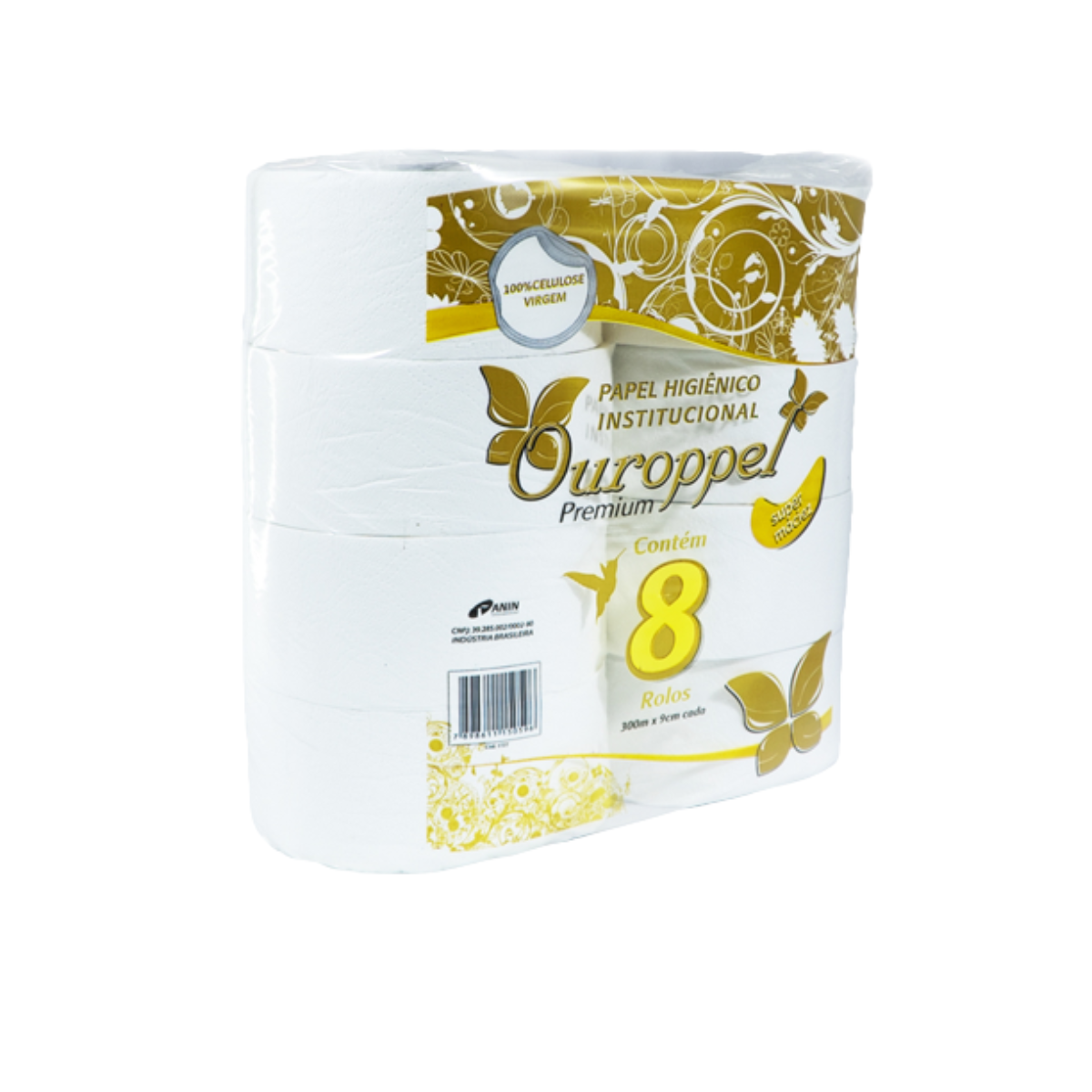 Papel Higienico Folha Simples 8 Rolos 300m Premium Ouroppel