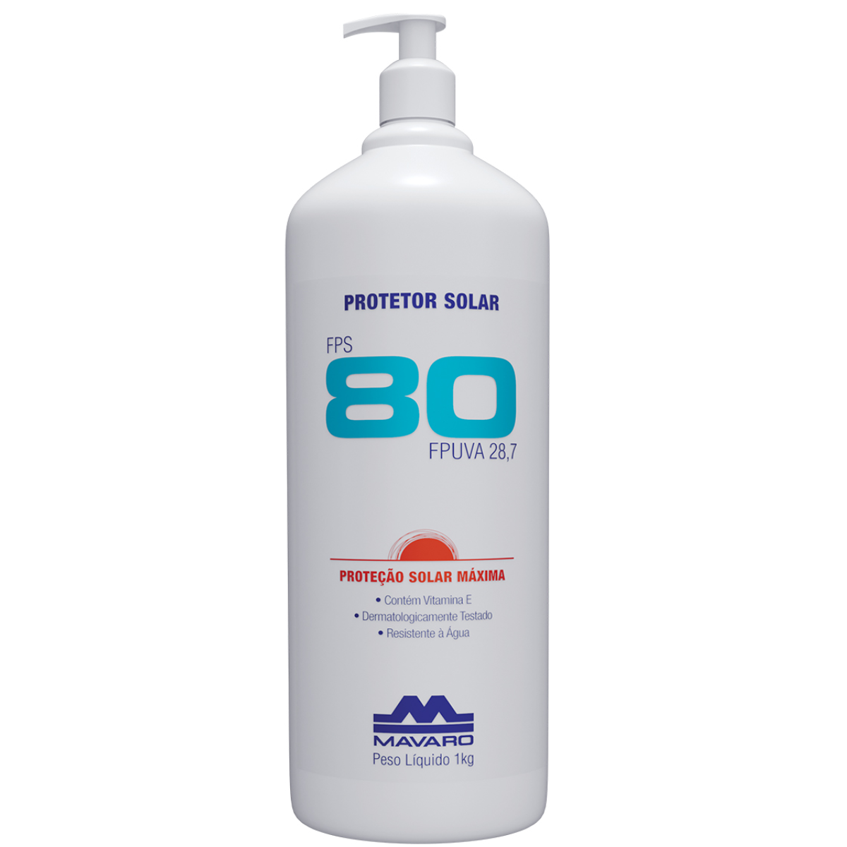 Protetor Solar FPS 80 eficaz contra a ação nociva das radiações UVA e UVB.