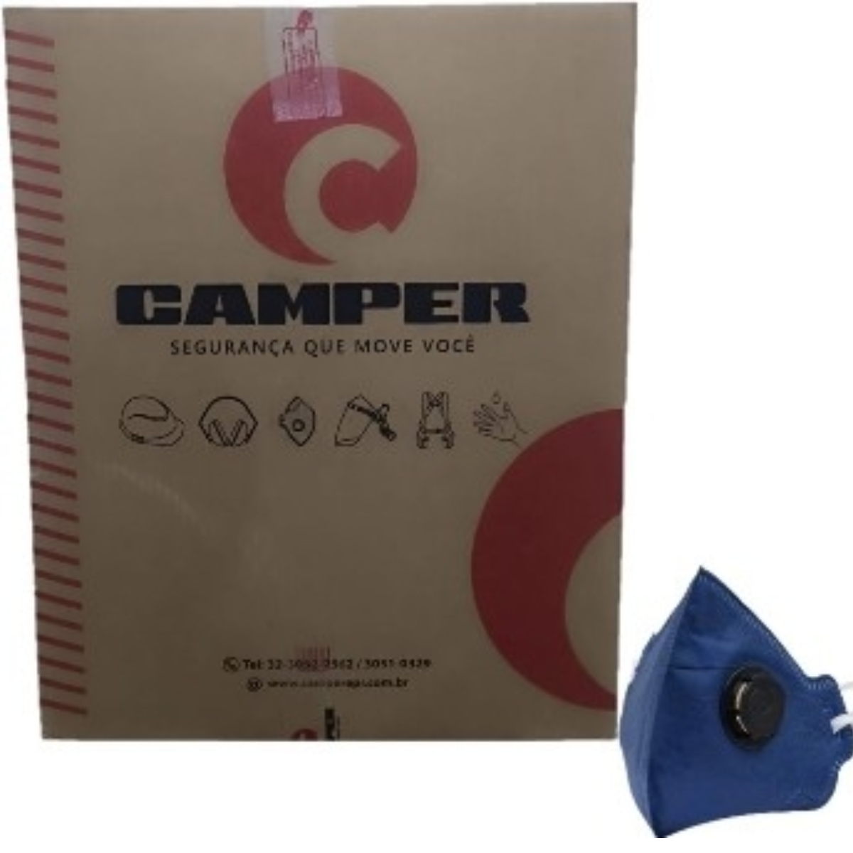 Respirador purificador de ar tipo peça semifacial filtrante para partículas; Classe PFF 2 ?S?; com válvula de exalação; com camada de carvão ativo, confeccionado em TNT; formato dobrável. Marca: Camper. ESTE EQUIPAMENTO DEVERÁ APRESENTAR O SELO DE MARCAÇÃO DO INMETRO.